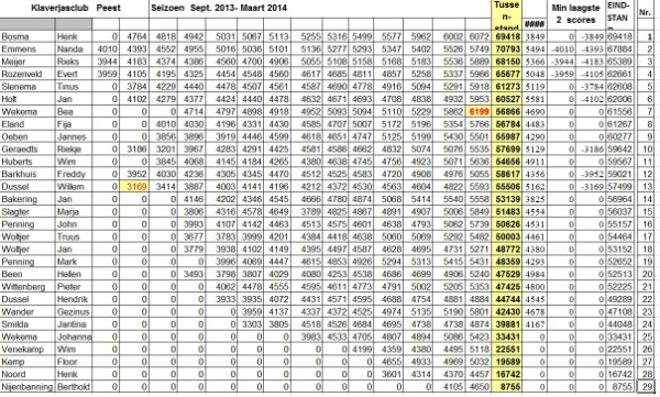 Dinsdag 25 maart, de laatste klaverjasavond van seizoen 2013-2014.