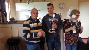 Zondag 28 januari 2018. De laatste zondag van de eerste maand in 2018, de start van de nieuwe competitie en de bekendmaking van de kampioenen van 2017. Kortom een zeer belangrijke dag in de Peester klootschietwereld. Alle deelnemers waren aanwezig behalve Bote Bosman, door de verwondingen, tijdens een bedrijfsongeval opgelopen, moet hij nog een lange tijd revalideren. Bote van harte beterschap. Nadat iedereen weer terug was van het parcours kon de uitreiking plaats vinden van de “Berend Barkhuis trofee” ook wel de cup met de grote oren genoemd. Eerst kregen de winnaars van 2016 een herinneringsbeker uitgereikt. Daarna kwam het grote werk. De kampioen van 2018 was bij de dames Riekje Geraedts en bij de heren John Penning. Traditie getrouw werd na de uitreiking snert gegeten. Deze was net zo traditie getrouw door Riekje Geraerdts bereid. Er was helaas geen beker voor snert koken, Riekje zou hem zeker verdiend hebben, zij had het weer prima voor elkaar, de snert was heerlijk.! Uitslag klootschieten 2017