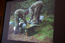 Na het welkomswoord van de Burgemeester, overhandigde Rob de Jong, destijds explosievenverkenner bij de Drentse politie zijn hele archief van het gebeuren aan Bert Venema, voorzitter van de Historische Vereniging Norch.