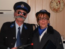 Na het dictee werd uitgekeken naar Thomasvaer en Pieternel. Ook dat pakte weer heel anders uit, in plaats daarvan kwam de plaatselijke Hermandad op volle sterkte binnen vallen. Menig Peester bleek in 2011 niet altijd de gebruikelijke weg bewandeld of befietst te hebben. Volgens de korpsleiding liep het de spuigaten uit, werd het tijd dat de Peesters eens goed de oren gewassen werd. De aangehaalde zaken logen er dan ook niet om. Een moeder die op de dansvloer haar dochter wilde uithuwelijken, een fietspad dat zomaar afwisselend smal en breed werd en ook nog ging kronkelen terwijl de fietser toch zeker meede te weten dat hij rechtuit reed. In de zomermaanden op winterbanden rijden en ook werd er in stilte getrouwd. Gelukkig bleven arrestaties uit en kon er daarna nog volop geproost worden en bleef het tot de kleine uurtjes bere gezellig.  Jantje hoe schrief je dit ?