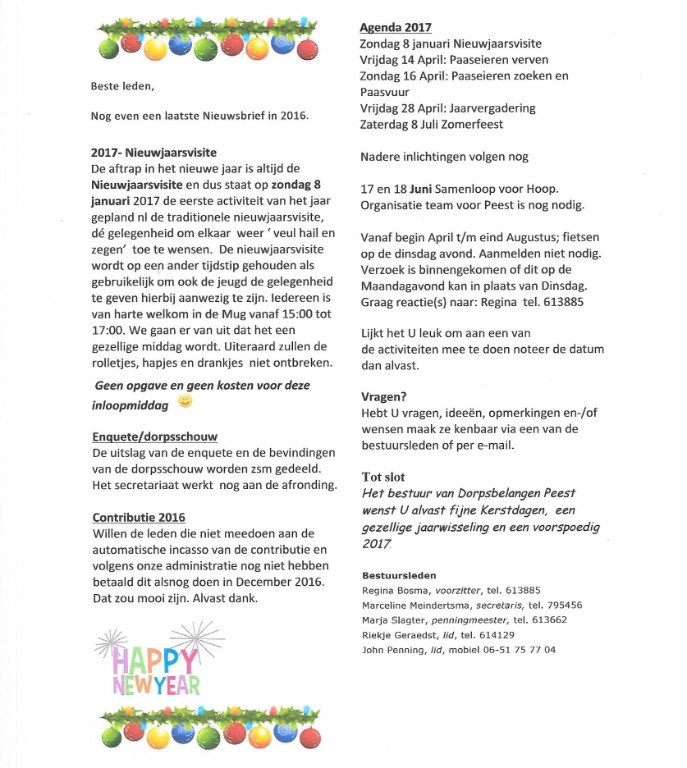 nieuwsbrieven Dorpsbelangen Peest: december 2016