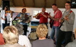 | Start Open Atelier Route 2011 bij Irene Meuldijk. De opening werd ingeluid door de bekende Groningse folkgroep "Törf" die op geheel eigen wijze een geweldig concert gaven. Flip Rodenburg (1 van de bandleden) maakt sommige instrumenten zelf (waaronder de doedelzak,fluit, schalmei,draailier en duduk.) Namens de vereniging "Verkuno" opende Rianne Kooiman de OAR. De voorzitter van 'Huus van de Taol' en tevens gemeente secretaris Anne Doornbos deed een openingswoordje in het Drents en presenteerde zijn nieuwe dichtbundel. Mede door de muziek en de prachtig vrolijk gekleurde schilderijen van Irene was het een gezellige intieme sfeer en een mooie opening.